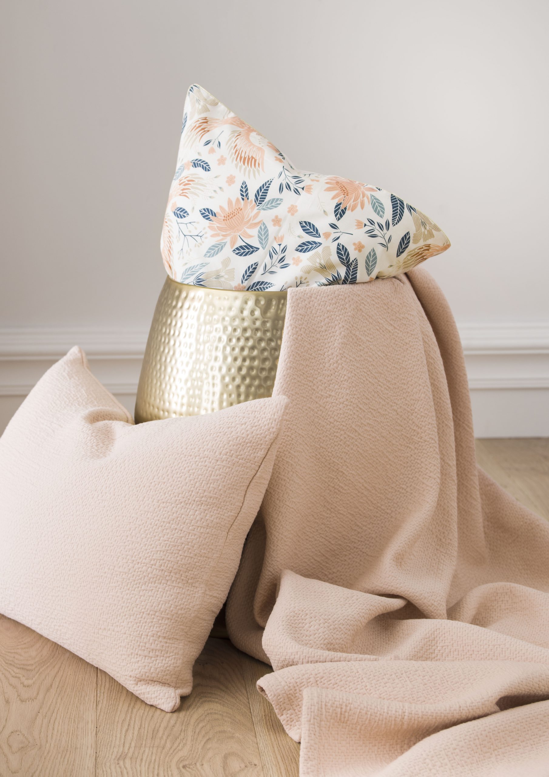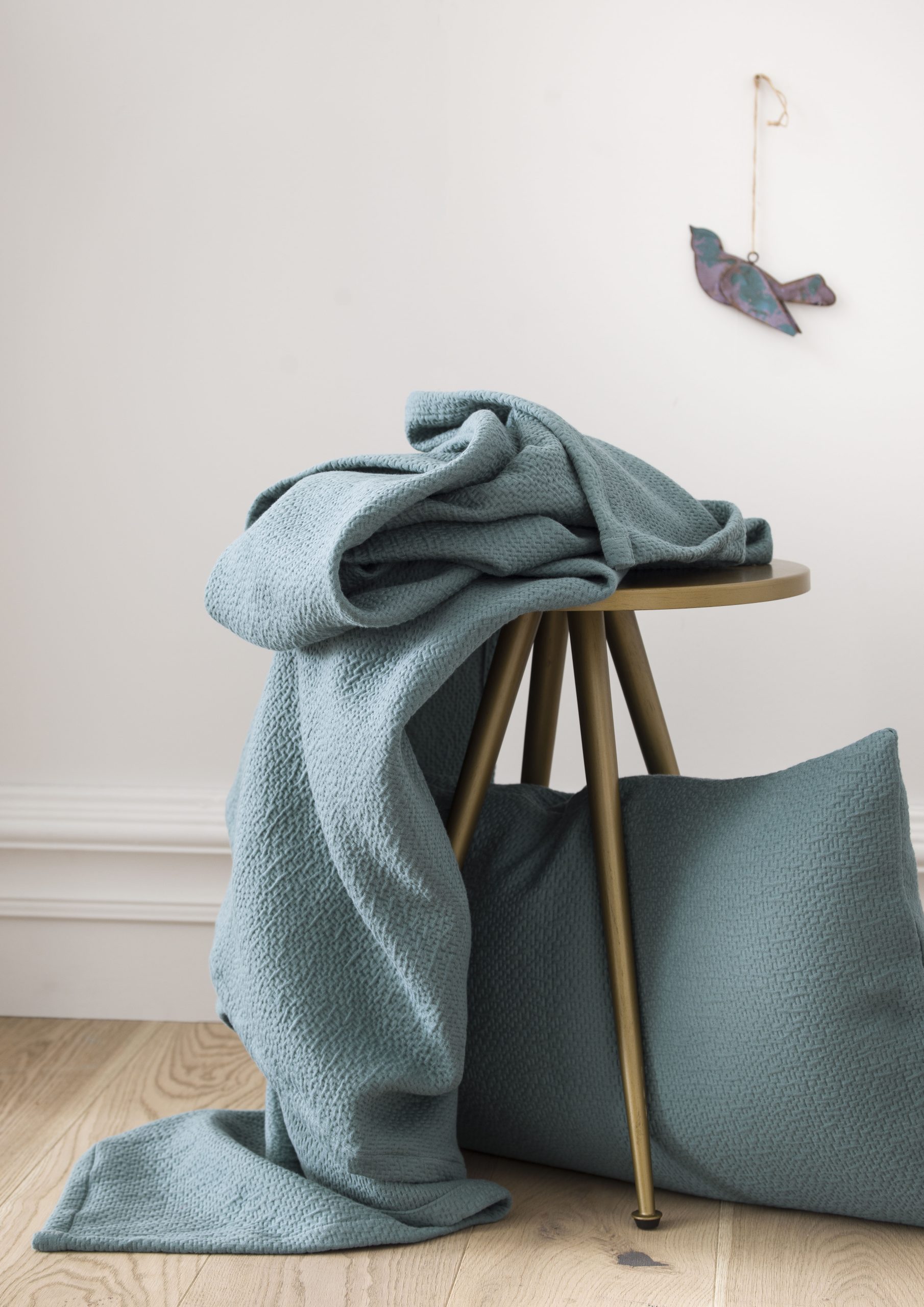 Le plaid POEME 130×220 cm est un accessoire très tendance. Disponible dans les tons rose poudré et bleu-vert, le plaid haut de gamme s’intégrera facilement dans votre intérieur pour une touche décorative raffinée. Son jacquard 100% coton effet texturé piqué est d’une grande douceur. Ce plaid souple est fini avec délicatesse par un bord de 1cm.