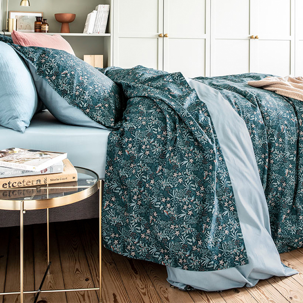 Le drap de lit Ode Nocturne en percale de coton vous offre une bien jolie ballade au clair de lune. Un linge de lit vintage, qui apportera une ambiance rétro et british à votre intérieur. Des motifs d’herbes givrées, de verdure et de petits volatiles qui apporteront une touche poétique et qui enchanteront petits et grands. Un drap de lit intemporel, intergénérationnel et plein d’harmonie. A associer avec nos unis en percale Bleu glacier ou Lingerie, ou avec notre gaze de coton Tendresse Alpin, Tangerine et Fard.