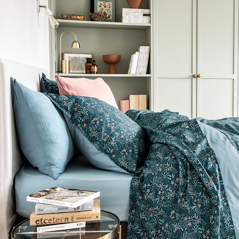 La parure de lit Ode Nocturne en percale de coton vous offre une bien jolie ballade au clair de lune. Notre modèle à l’esprit délicieusement vintage apportera une ambiance très tendance et So British à votre chambre. Au milieux des herbes givrées de ce merveilleux tapis de verdure, découvrez d’espiègles petits oiseaux cachés ça et là. Le dessin sophistiqué et les détails fournis de ce modèle enchanteront petits et grands et apporteront une touche rétro et poétique à votre pièce.