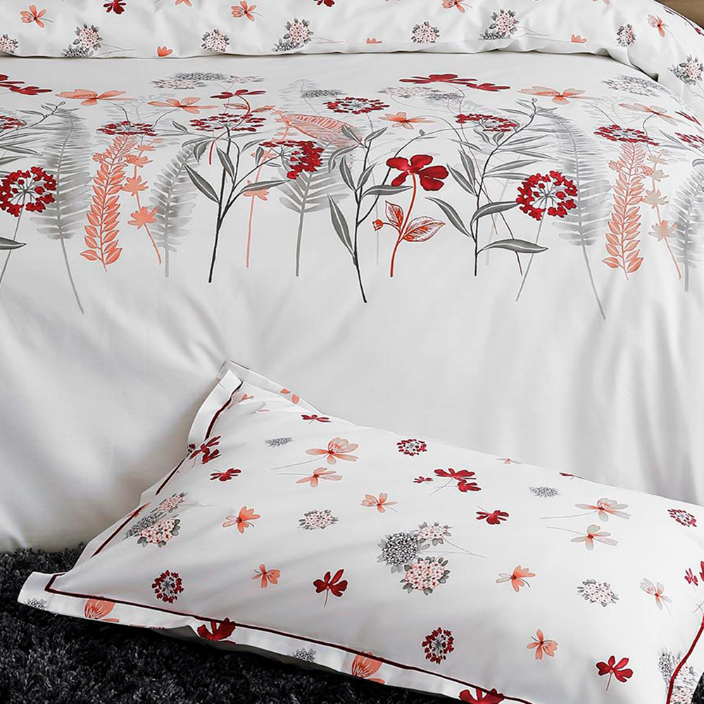 La taie d’oreiller en percale de coton Petite Folie Rouge arbore un imprimé fleuri au camaïeu de rouge et de gris sur fond blanc uni. Le motif mélangeant fougères et fleurs des champs façon aquarelle, évolue selon les formats carrés ou rectangulaires pour apporter selon vos envies plus de contraste à votre parure de lit. Confectionnée en France, à partir de pur coton peigné et avec un tissage de 80 fils/cm², cette pièce vous offrira une grande délicatesse au toucher et une excellente tenue dans le temps. En plus de son traitement Easy Care qui lui confère un repassage facile, cette taie est également conforme au label OEKO-TEXⓇ, vous garantissant ainsi l’absence de produits chimiques nocifs pour la santé.