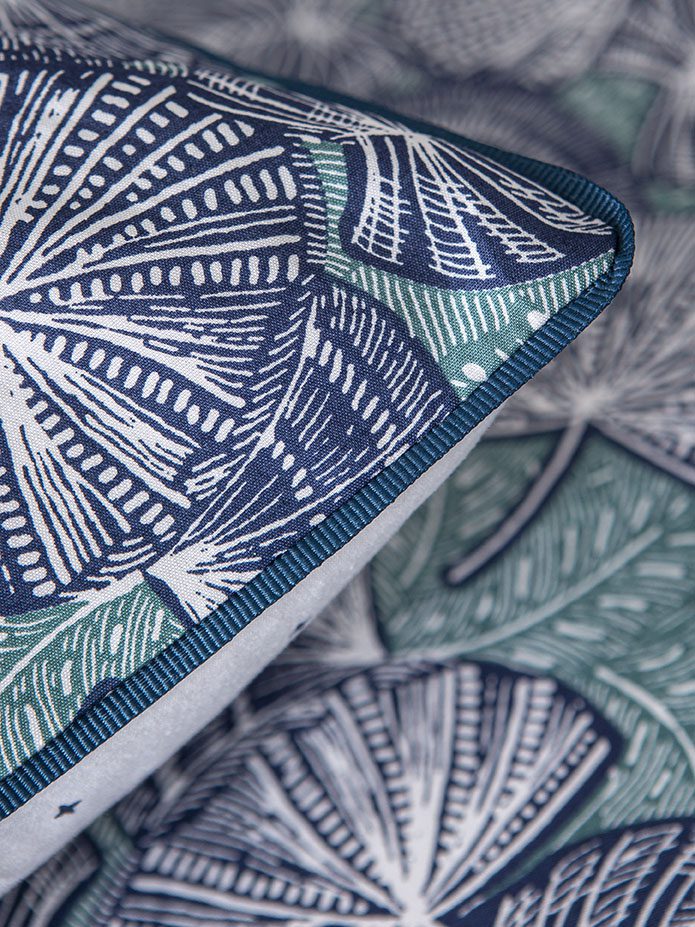 Notre modèle Zéphyr, avec son motif de feuillages aériens, offre une touche de gaieté et de poésie à votre espace de sommeil. Inspiré des arts ethniques, ce dessin graphique apporte une touche décorative originale et pleine de charme à votre intérieur. Avec des nuances végétales de bleu et de vert, les dessins ornementaux sont contrastés à l’arrière-plan par de petites étoiles blanches sur un fond blanc. Les taies sont joliment finies avec un passepoil ruban bleu paon, pour un look sophistiqué jusqu’au bout. Chez nous, nous sommes fiers de vous proposer une gamme de taies d’oreiller en percale de coton de la plus haute qualité, pour vous offrir un sommeil paisible et confortable.